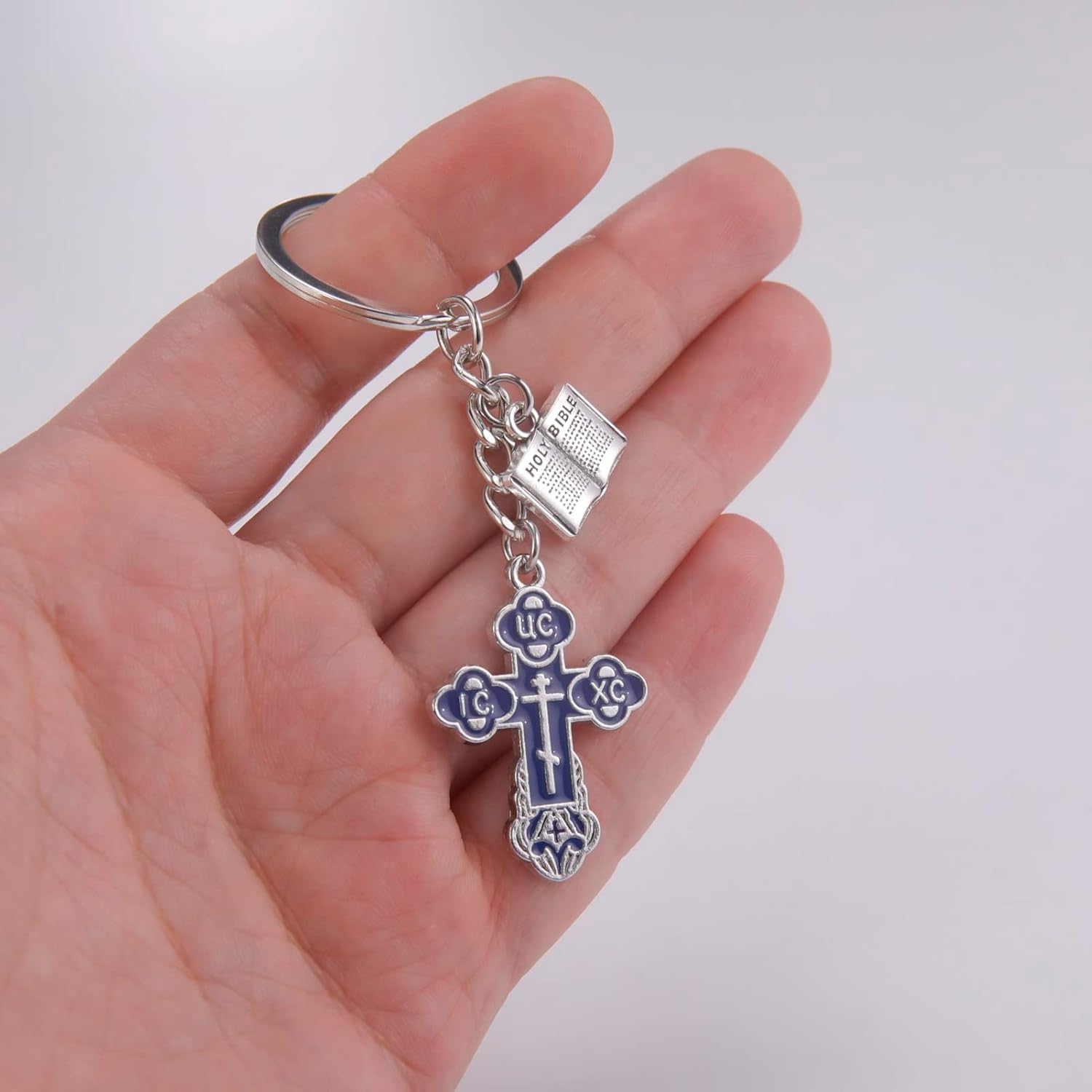 TEAMER Cross Keychain Russian Orthodox Crucifix Eastern Church Keyring Religious Christian Prayer Jewelry for Men Women