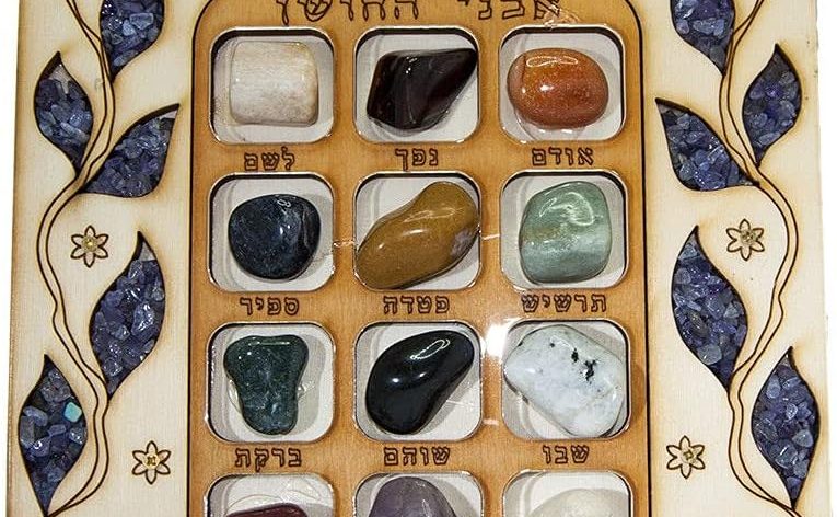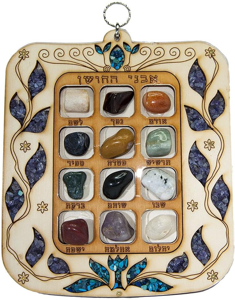 High Priest Breastplate Hoshen 12 Tribes of Israel Habrew Semi-Precious Stones Kabbalah Wall Decor 9inch Natural Wood Handmade Keychain Ephod Gems Exodus Protection Brown