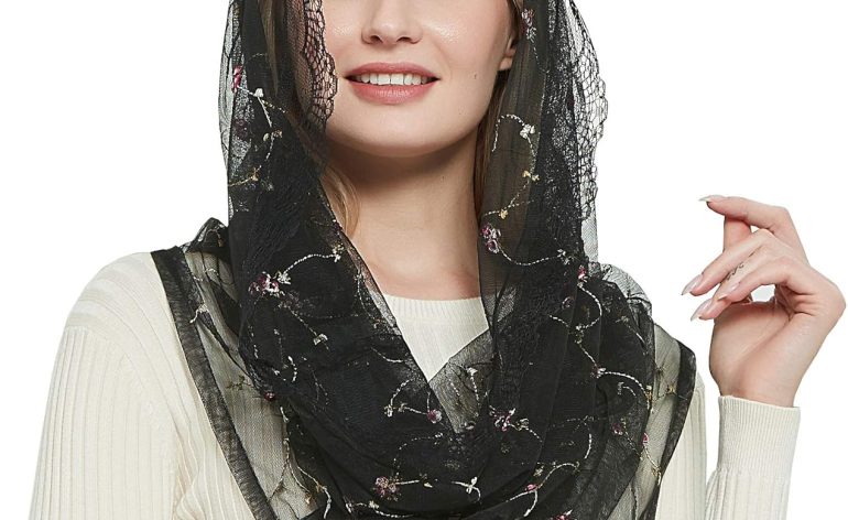 Orthodox Veil Head Covering with Embroidered Flowers Catholic Chapel Mantilla veil V50