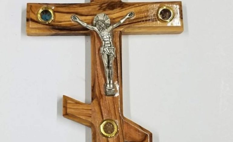 Thick olive wood Russian Orthodox or three-bar Eastern Cross / Crucifix – Also known as the Patriarchal Cross.