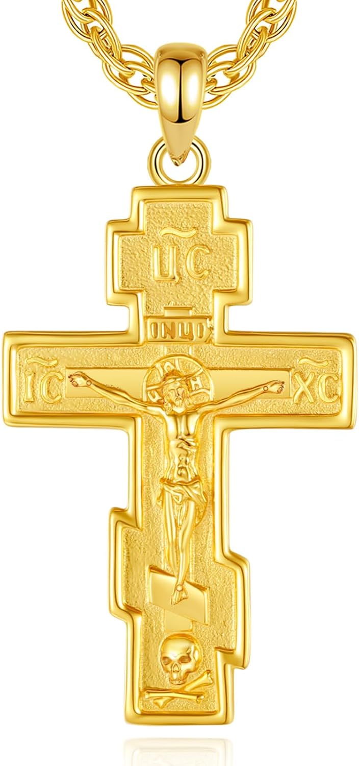 INFUSEU 925 Sterling Silver Jesus Cross Necklaces Crucifix Orthodox Cross Caravaca for Women Men Religious Protection Gifts