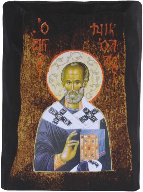 Wooden Greek Orthodox Icon of Saint Nikolaos