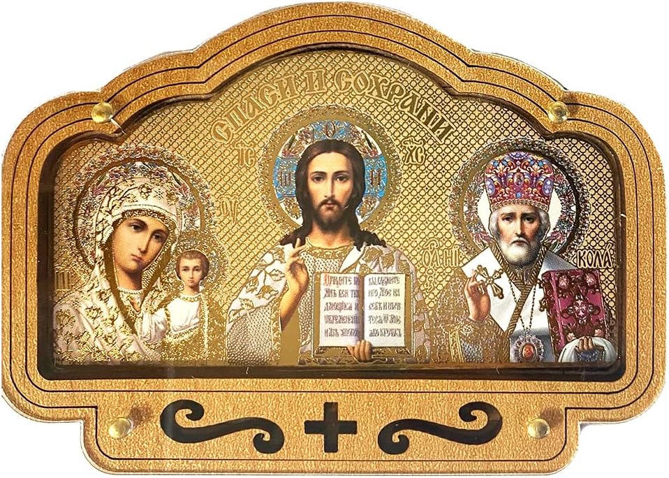 Car Icon Protection Travel Icons of Christ The Teacher Virgin of Kazan and Saint St Nicholas 3 5/8 Inch, Religious Gifts For Woman, Man