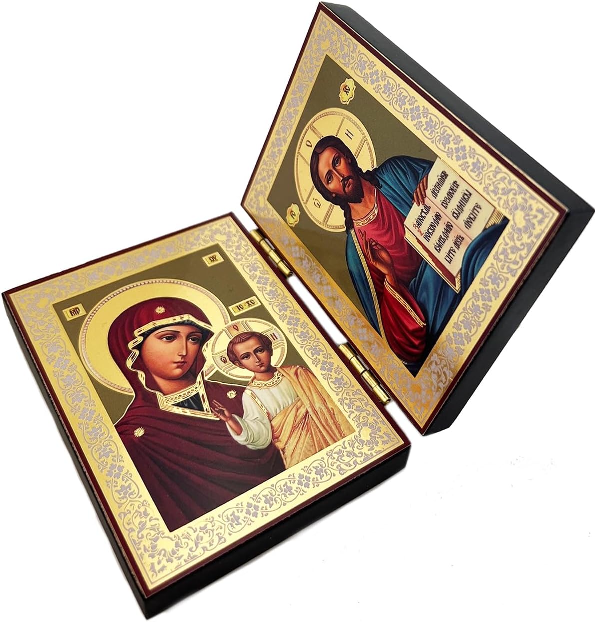 Beautiful Orthodox Catholic Icon Diptych Madonna and Child Our Lady of Kazan and Christ The Teacher – Religious gift – birthday, Christmas, perct or traveling