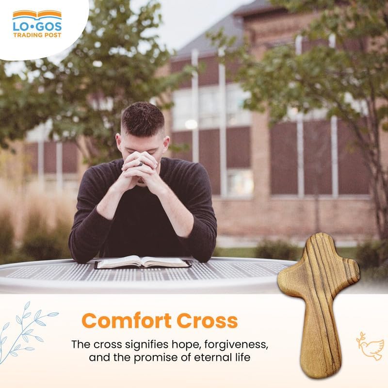 Olive Wood Comfort Cross: Keep a 2.75 inch hand cross for prayer in your pocket and carry a piece of the Holy Land wherever you go as a reminder of Christ’s love and presence. This wooden pocket cross is handcrafted out of genuine olive wood from the Holy Land.
