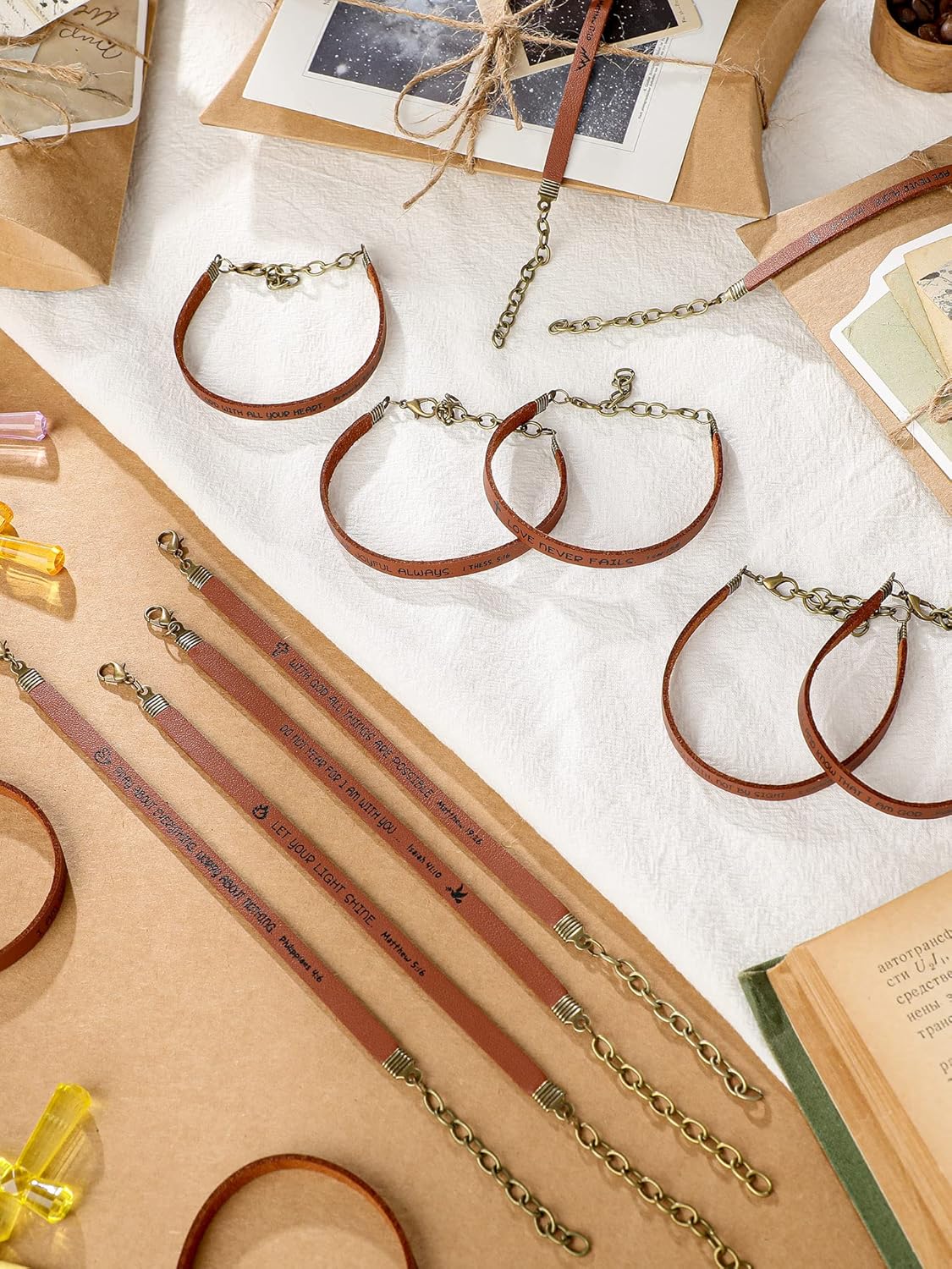 15 Pcs Christian Bracelets for Women Men Inspirational Leather Bible Verse Bracelets God Faith Scripture Friendship Bracelets