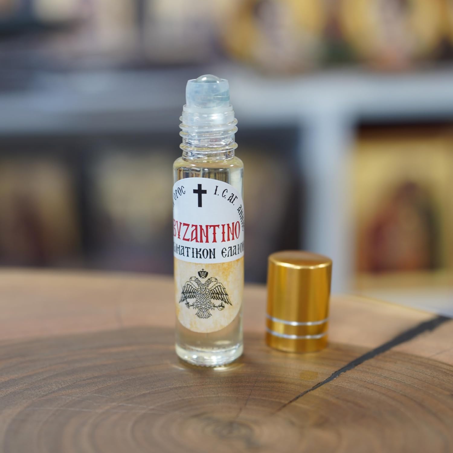 Myrrh Anointing Oil – Orthodox Scented Anointing Oil – Handmade by Monks at The Holy Skete of Saint Anna, Mount Athos Greece (Small Roller Bottle 8ml (0.27 oz), Byzantine)