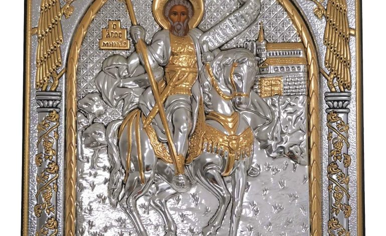 Saint Minas Silver Orthodox Icon/Greek/Handmade