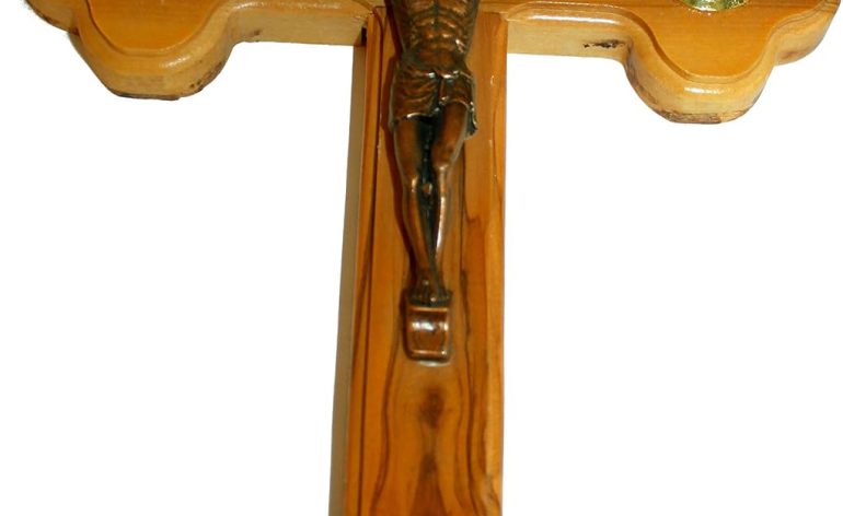 Hand-Carved Olive Wood Cross about 10.5 Inches in height. Corpus is either Copper or Silver Tone as Shown.
