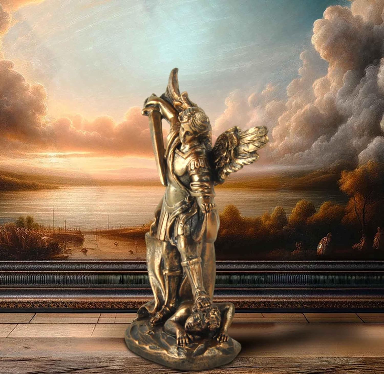 Material Description: Crafted from bronze resin, our magnificent St. Michael figurine is not only lightly hand-painted but also boasts a beautiful, durable, strong, long-lasting, and easily maintained material. Experience the perfect blend of aesthetics and resilience in this meticulously crafted masterpiece
