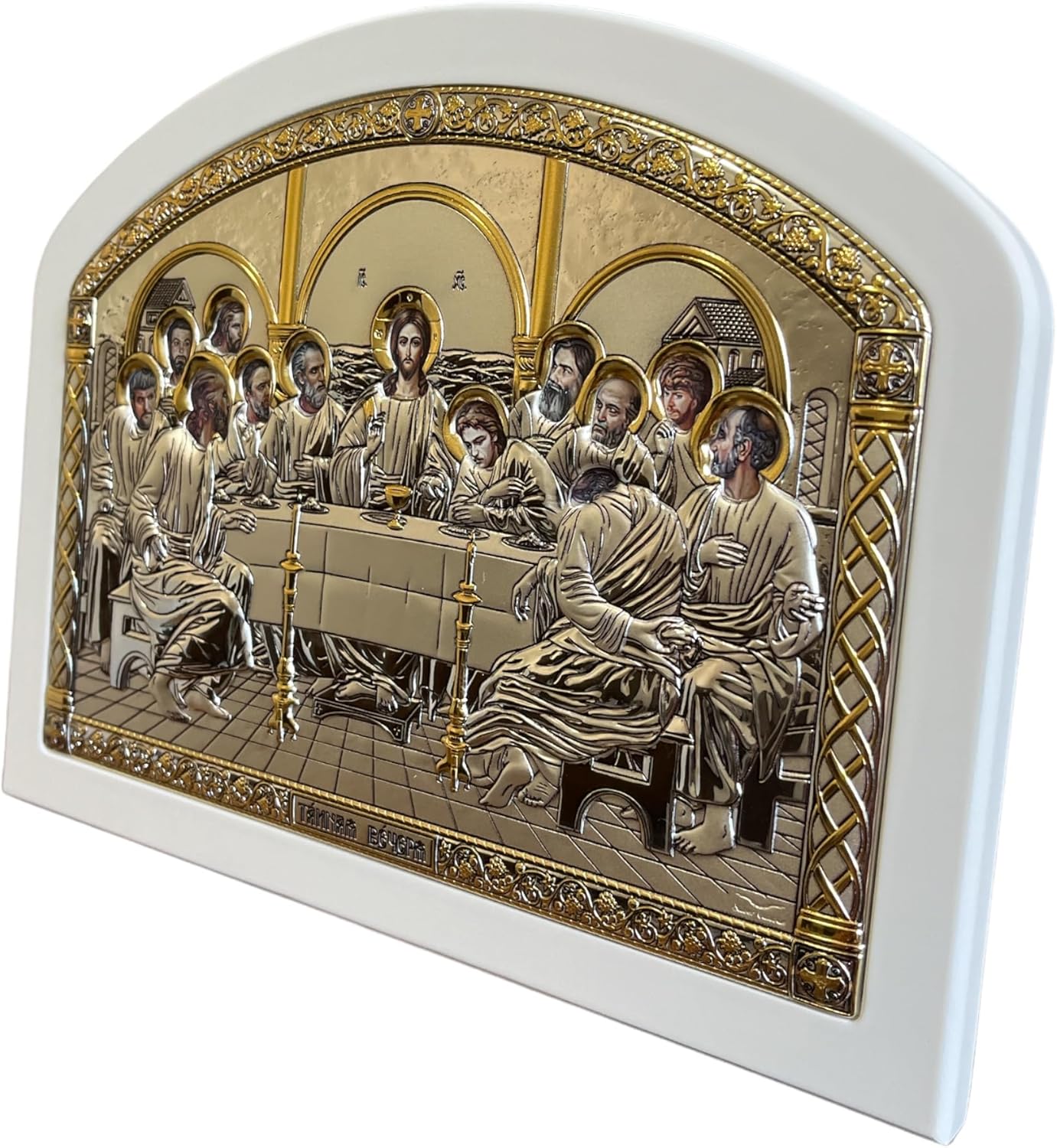 (AВ-2/019G/В) Silver christian orthodox icon, gilded, Last Supper, handmade, Greece (10 x 8)