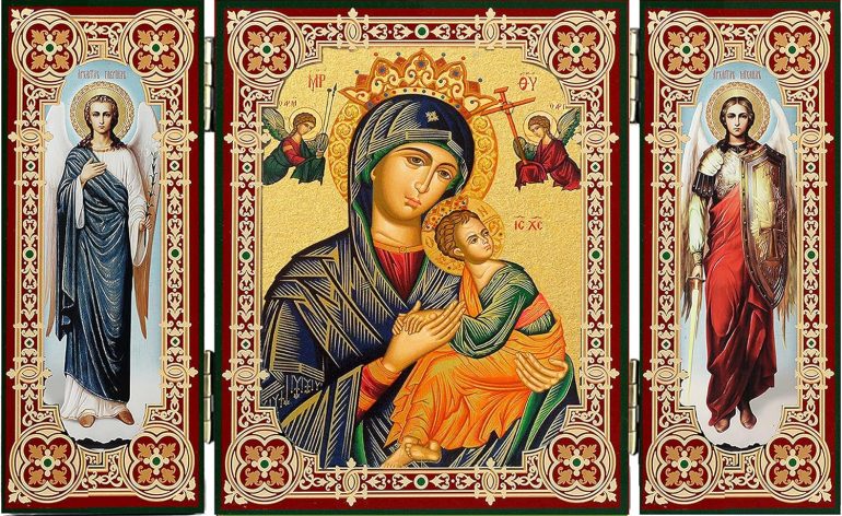 Perpetual Help Icon triptych – With Archangels Saint Michael and Saint Gabriel