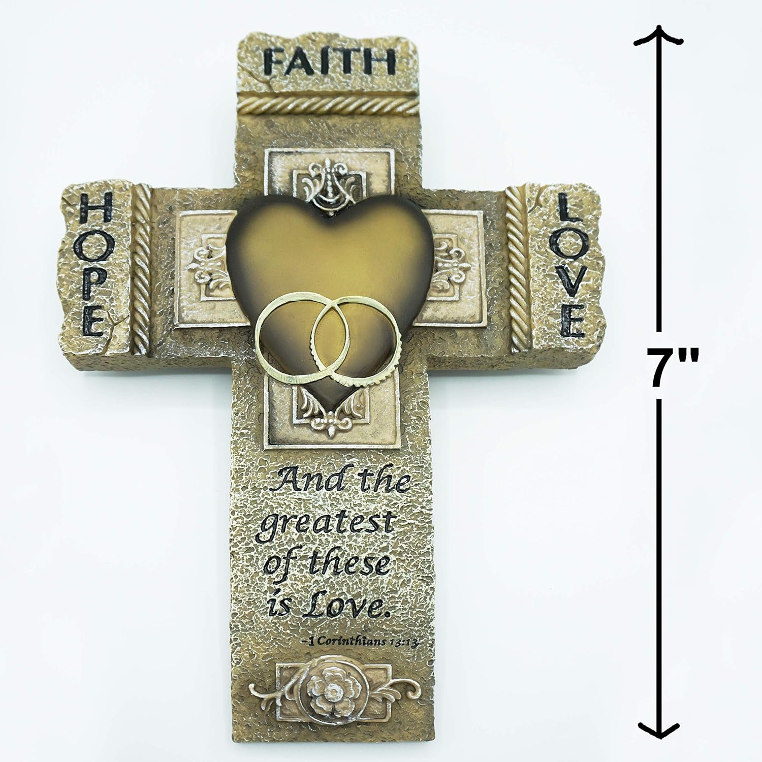 FAITH HOPE AND LOVE: Celebrate the foundation of your marriage with this 7.25-inch by 10.5 inch religious style wall cross decor designed to hang on your wall in your bedroom, living room, dining room, or anywhere else you’d like to display