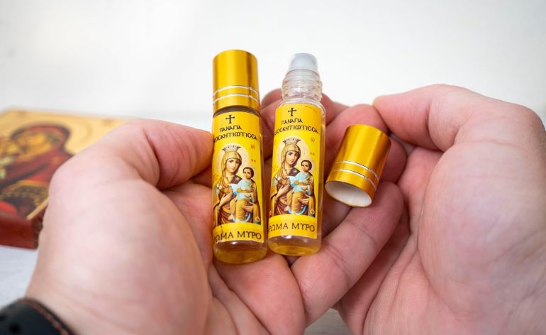 Authentic anointing oil Myrrh of Mount Athos (1pcs) – A Monastic Blessing in Every Drop with icon of your choice (With icon of Annunciation Of Virgin Mary)