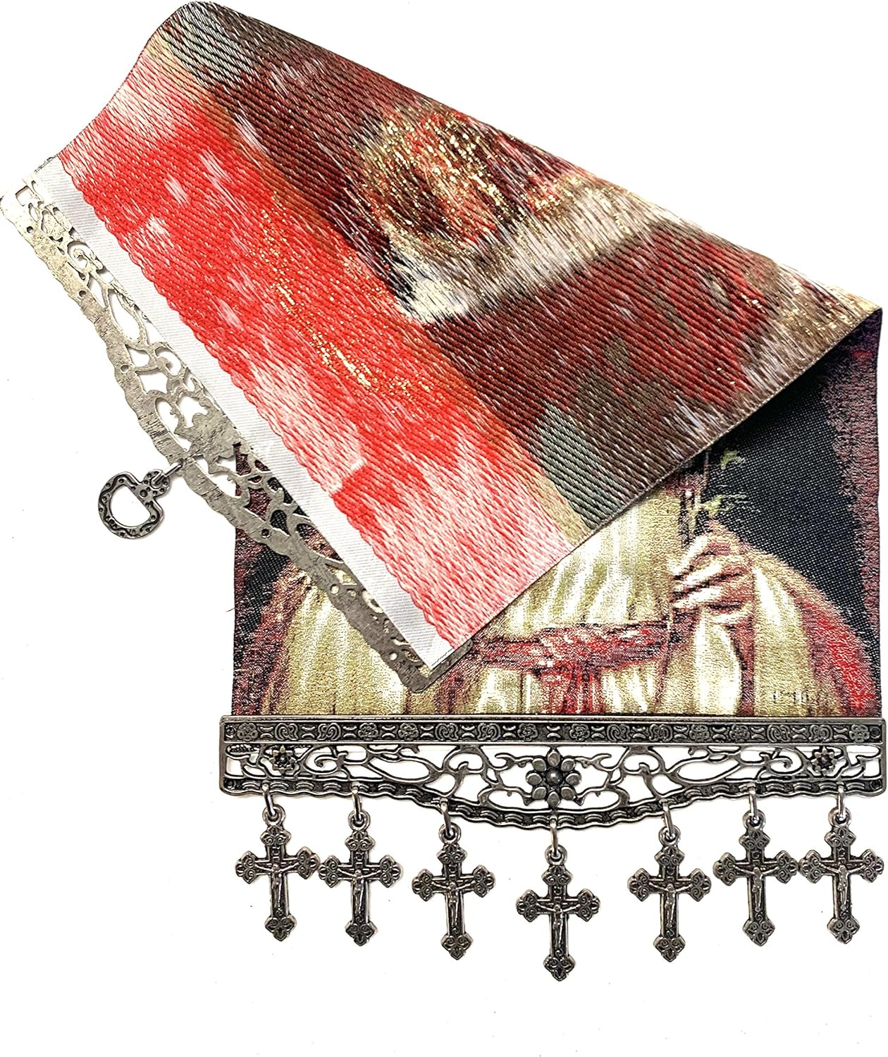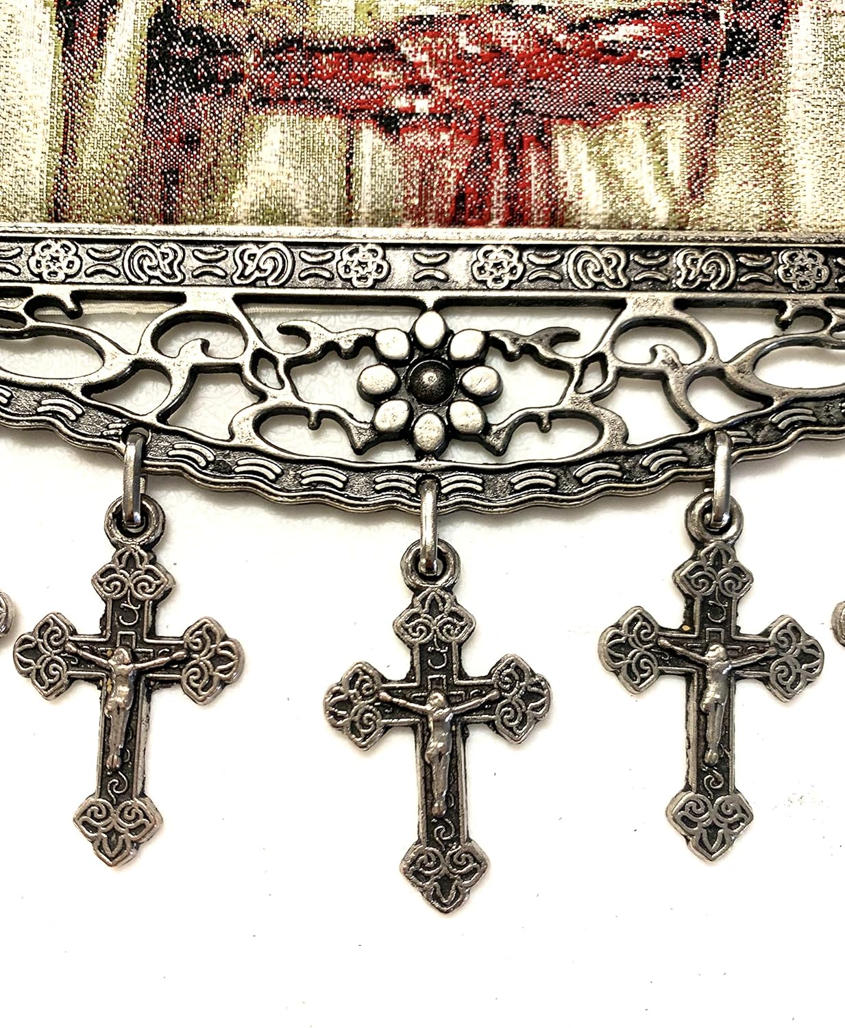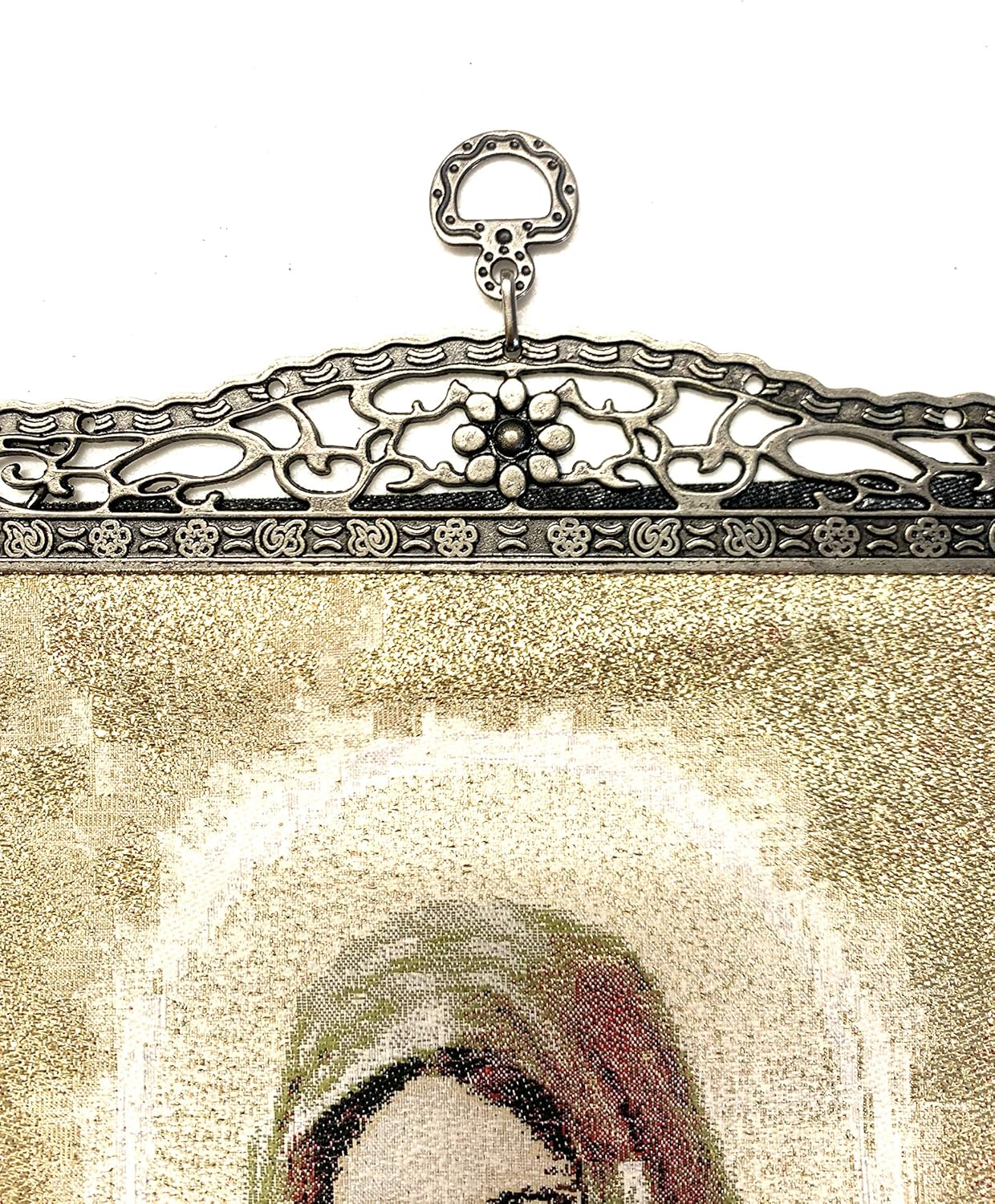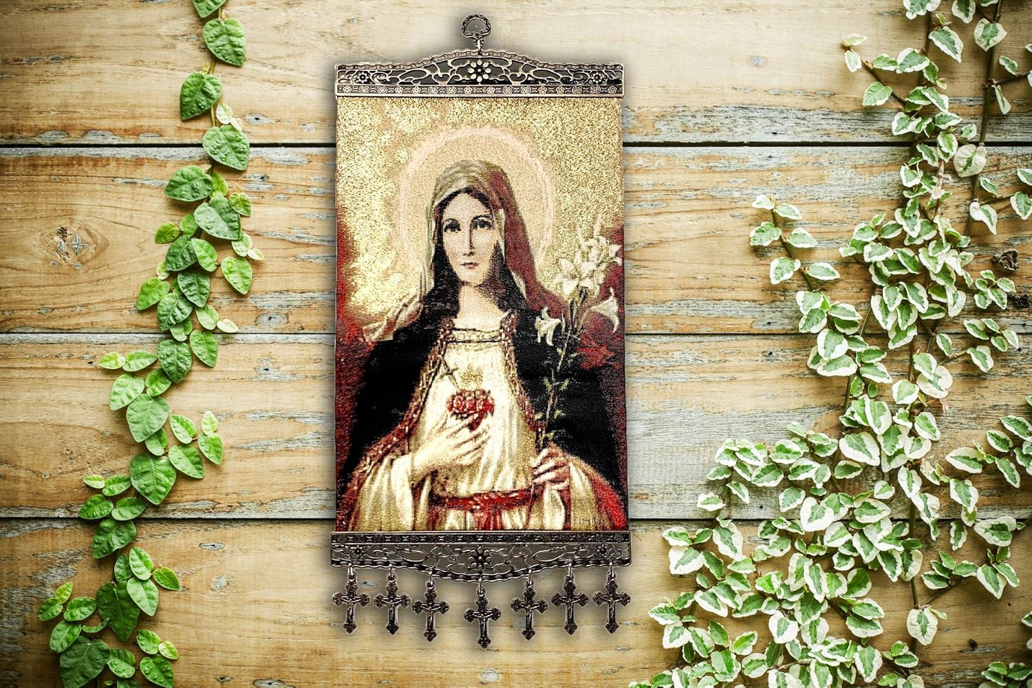 One of a kind unique religious Icon, Holy Saint Mary Blessed Virgin, Sacred Heart, Wowen Tapestry Icon With Metal Crosses Featuring Blessed Virgin Mary, Perfect Home Decor for Entire House or Office Spaces