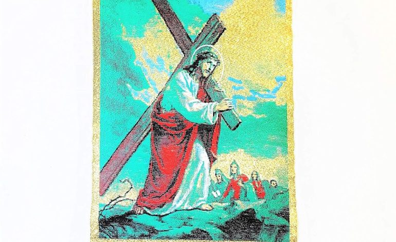 Jesus Christ Carrying Cross- Religious Icon – Wall Hanging Tapestry Banner Large Art Décor – Christian Orthodox Catholic Cross – 16 x 8 inch – Christmas Ideal