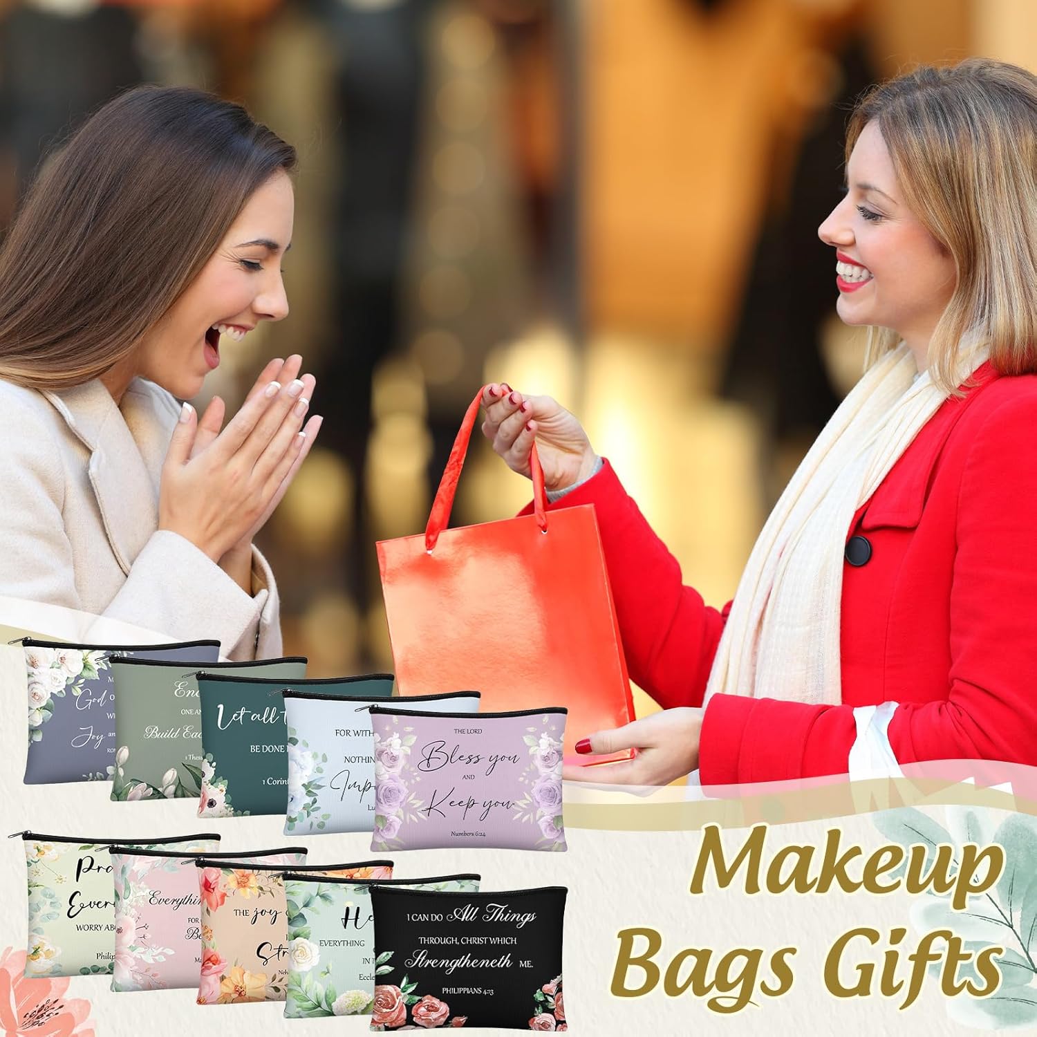 Jetec 30 Pcs Christian Gift for Women Religious Valentine Gifts Cosmetic Bags Inspirational Bible Verse Pencil Pouch Makeup Bags with Zipper for Travel Women Mother Sister(Morandi Style)