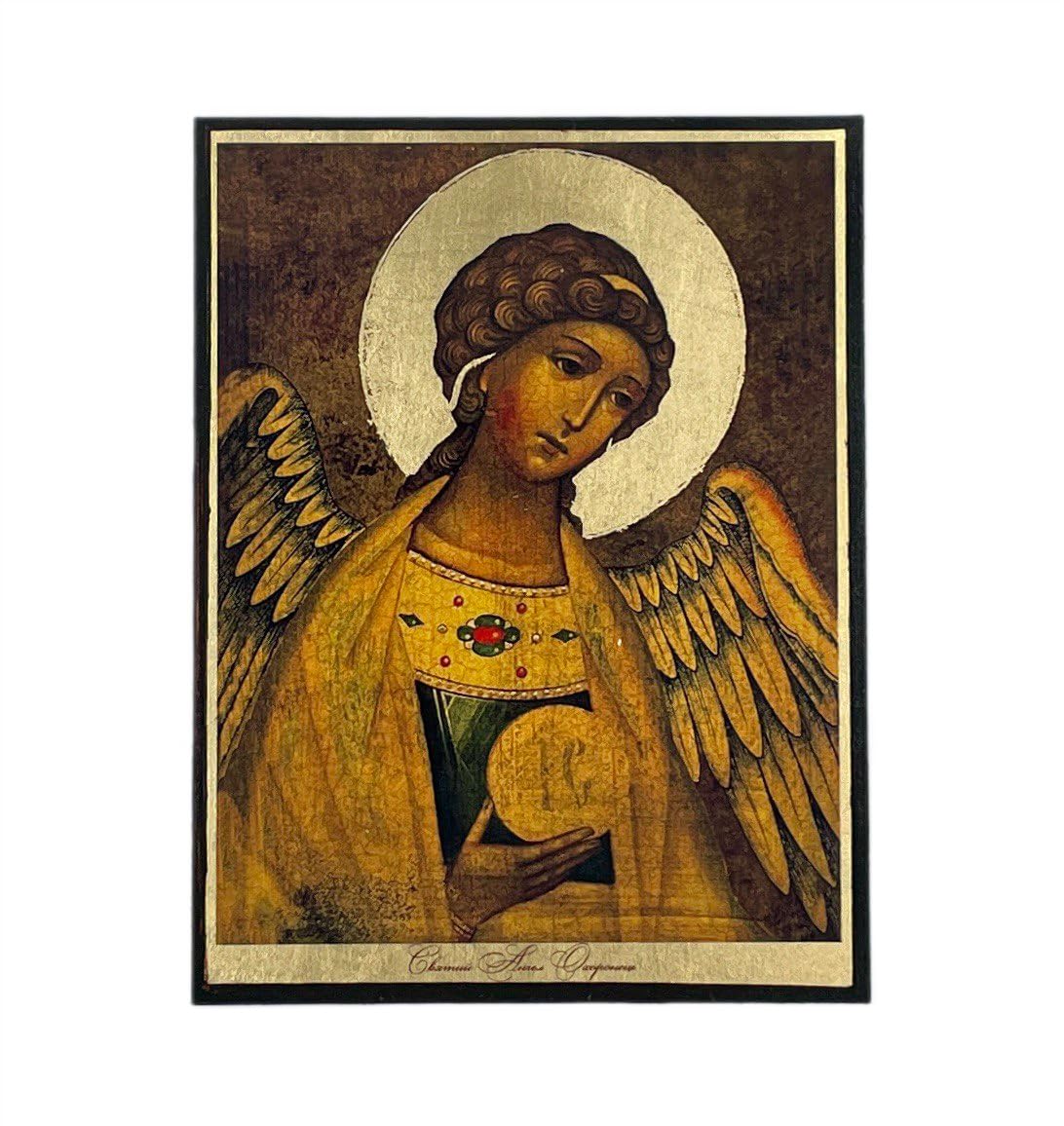 This handmade wooden icon of the Guardian Angel is created with great attention to every detail, in authentic Byzantine artistic technique using the traditional silk-screen method.