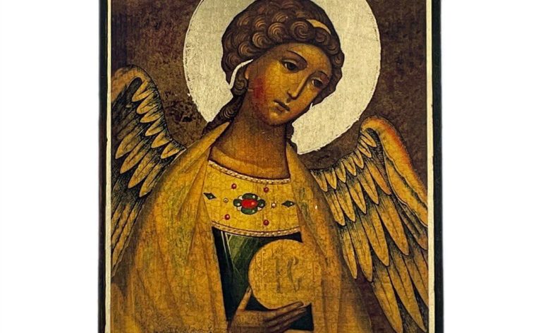 Guardian Angel Icon – Greek Orthodox Handmade Icon, Byzantine Art Wall Hanging Wood Plaque, Religious Decor, Christian Gift. 16 х 21 cm (6,2″ х 8,2″)