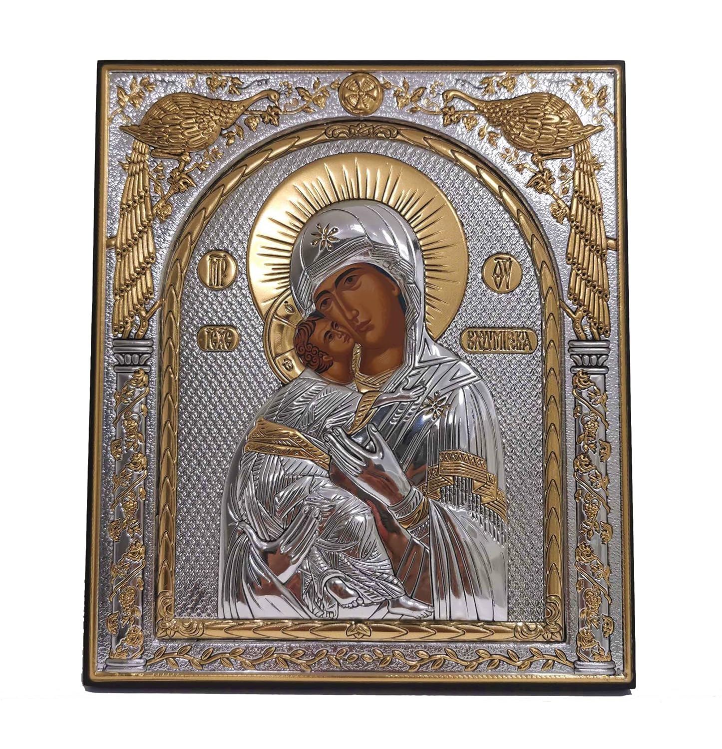 Virgin Mary of Vladimir Vladimirskaya Silver Orthodox Icon/Greek/Handmade