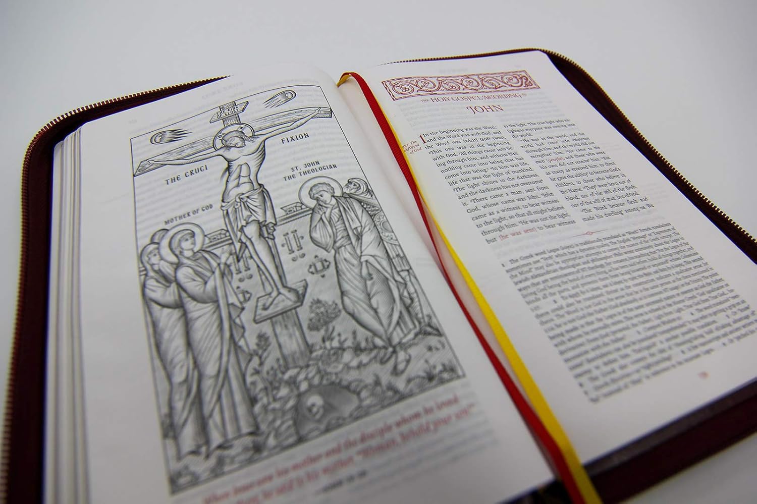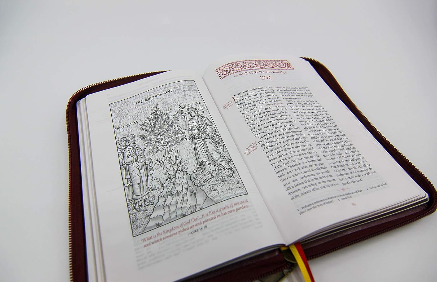 The EOB New Testament Portable is a unique and beautifully typeset edition of New Testament and intended for maximum portability. It is bound in burgundy manufactured leather, and includes a zippered closure. This zippered casing protects the page edges and allows you to carry this New Testament in your backpack, purse, laptop bag, etc. This dual column edition is offset printed on superior 35gsm bible paper with gilded edges, rounded corners, and two page marker ribbons. This beautiful, lightweight, compact and portable edition is 12cmx18cm [4.7inx7.1in].