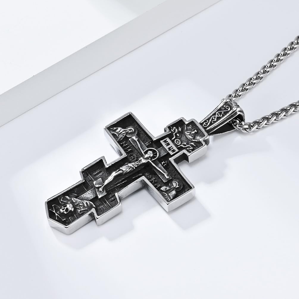 Eastern Orthodox Cross Pendant Necklace for Men and Women, Retro Religious Jesus Crucifix, Festival Pendant GIFT,Silvery