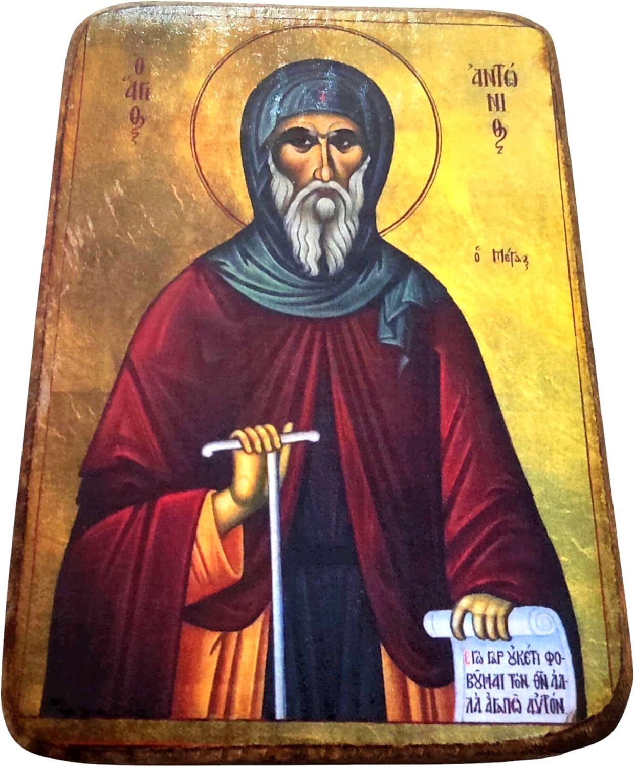 Wooden Greek Christian Orthodox Wood Icon of Saint Antonios Antony / A0