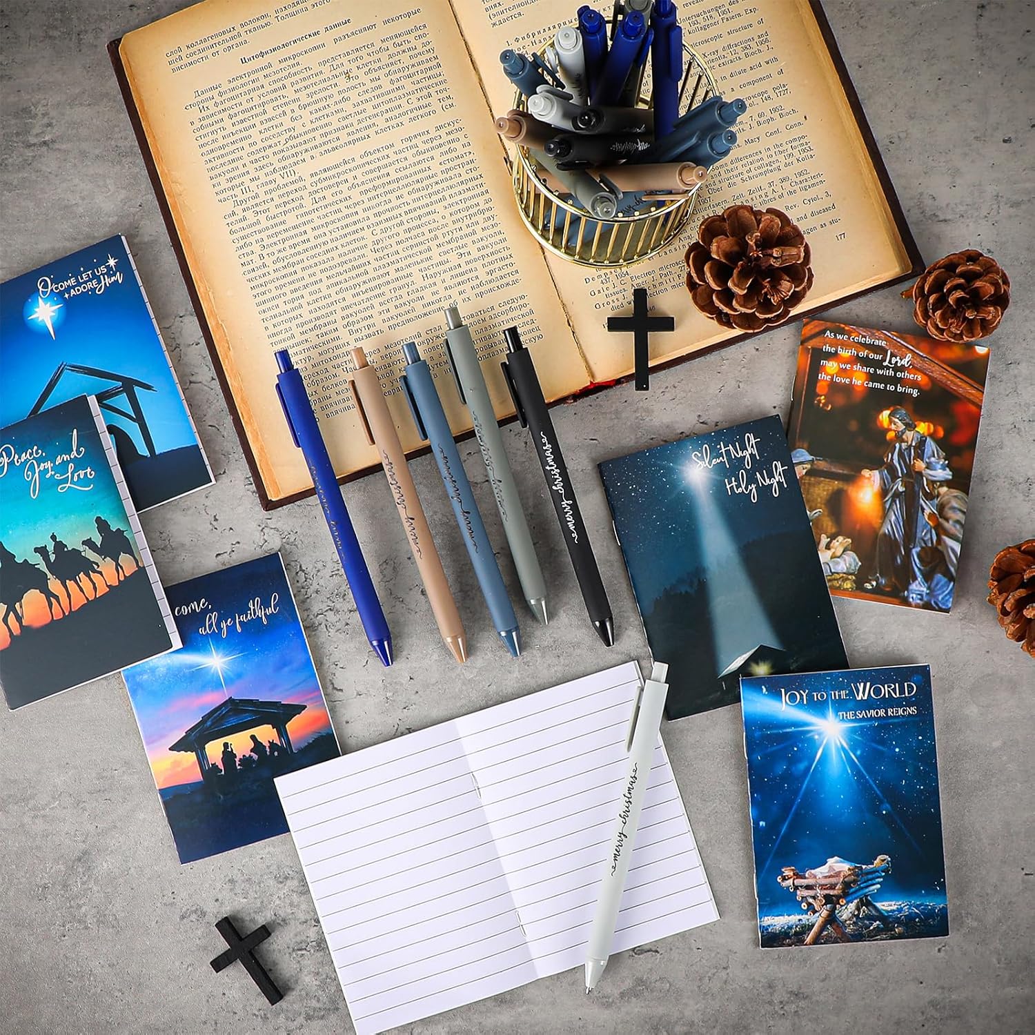 Bible Design: our Christian notepads feature beautiful Nativity scenes, and each cover in the notepad contains bible verse quotes; This makes them especially valuable to those who appreciate gifts that are religiously significant or spiritually inspiring; The pens are printed with [Merry Christmas], warm wishes for gifting to your loved ones