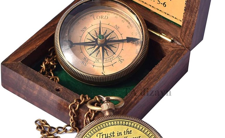 Solid Brass Compass Antiquated Brass Finish With Trust in The Lord with All Your Heart -Proverbs 3: 5-6 Quote Engraved Compass with Wooden Box