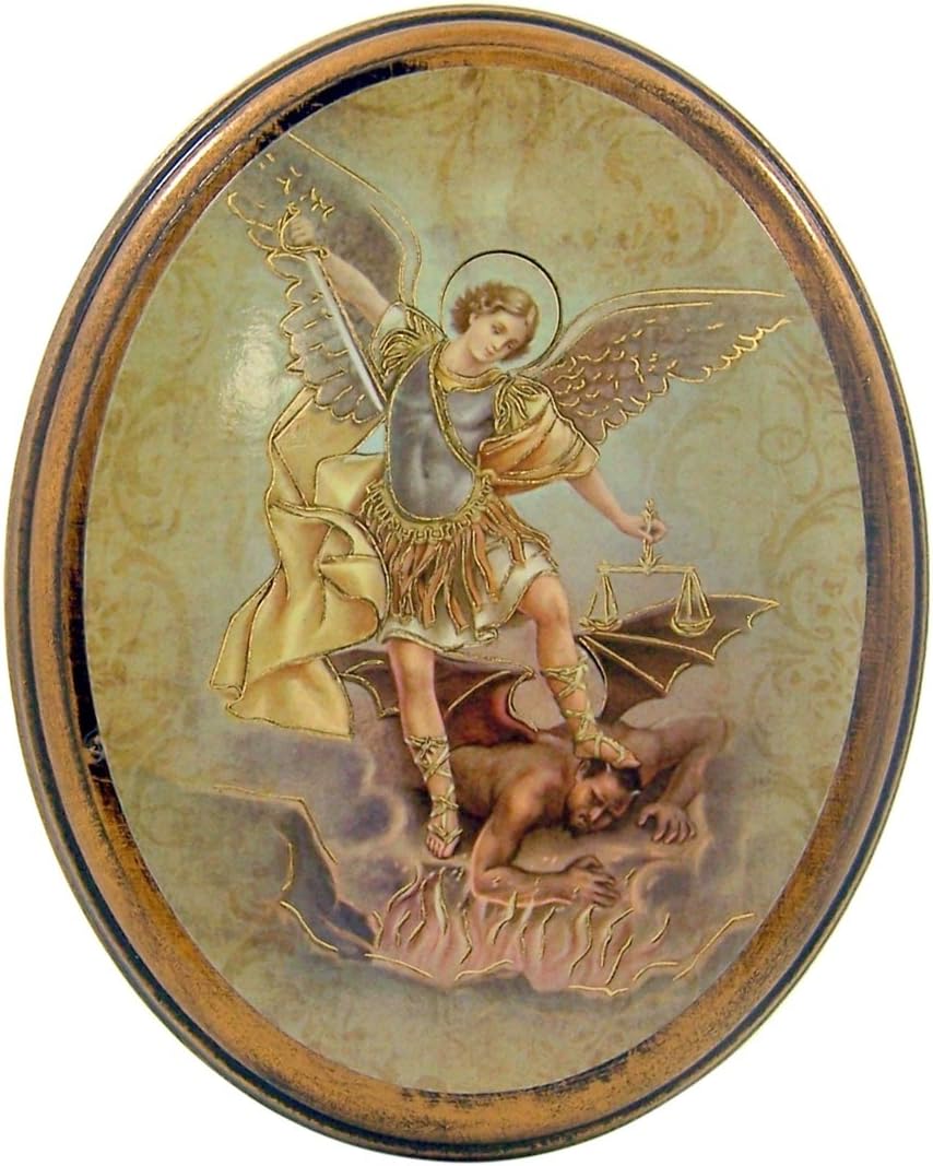 Gold Embossed Saint Michael the Archangel Icon on Oval Wood Plaque, 5 Inch