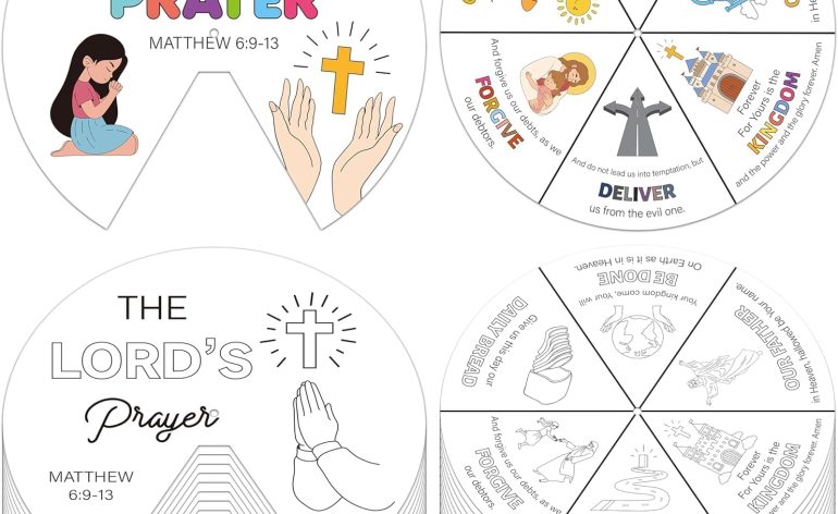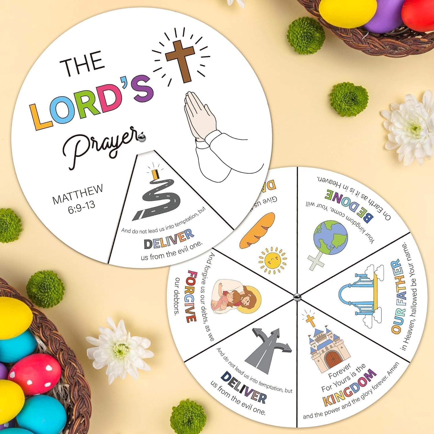 AsodSway Easter Christian Paper Crafts Religious The Lord’s Prayer Coloring Wheel Creative Crafts, 72 Make Your Own Prayer Jesus Bible Coloring Wheel Cards Sunday School DIY Art Activities for Kids