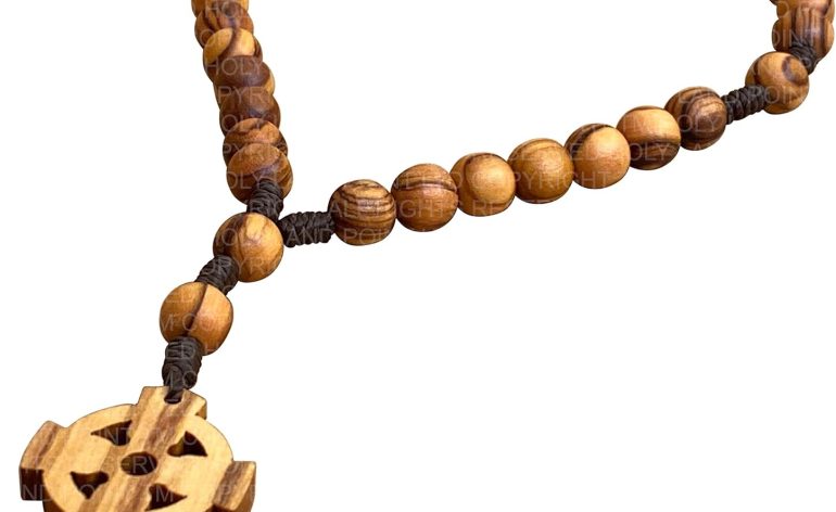 This is handmade olive wood Anglican prayer beads / rosary. 33 olive wood round loose beads of 8 mm, natural dark olive wood colors, very beautiful and unique olive wood cross. Made in Bethlehem by Holy Land Point. Designed in Jerusalem by Holy Land Point. Premium quality. Matte surface. UV protection. Very strong Italian nylon rope / thread. Certificated product. For this rosary we used very old olive wood slices of 200-330 years old. Bethlehem olive wood. The olive trees were not harmed or damaged during the production process. What are Anglican Prayer Beads? Christians have been praying with beads for centuries. The tactile nature of beads helps bring focus to prayers. While the Catholic rosary has been the most predominant form of prayer with prayer beads, Protestants can also pray with prayer beads. In the 1980s, an Episcopalian priest in Texas, Rev. Lynn Bauman, created Anglican prayer beads with more Protestant symbolism. While these were originally created for the Episcopal / Anglican tradition, they have been adopted by many Protestants and Catholics over the years. What Do the Beads Represent? These prayer beads start with a Cross as a reminder of Christ’s act of salvation and include 33 beads to represent the 33 years of Jesus’ life. The first bead is the largest one, called the Invitatory Bead. This one invites you into prayer, calling God into your presence. The remaining 32 beads are divided into 4 ‘weeks’. There are four Cruciform Beads to start each week, which are symbolic of the 4 Gospels and the 4 seasons of the year. Each ‘week’ includes 7 Week Beads. The number 7 is symbolic of spiritual perfection, 7 days of creation, 7 liturgical seasons of the year, 7 days in the week. Some may also include a Resurrection Bead next to the Invitatory Bead, as a reminder that Christ has triumphed over death and promises us eternal life in his kingdom.