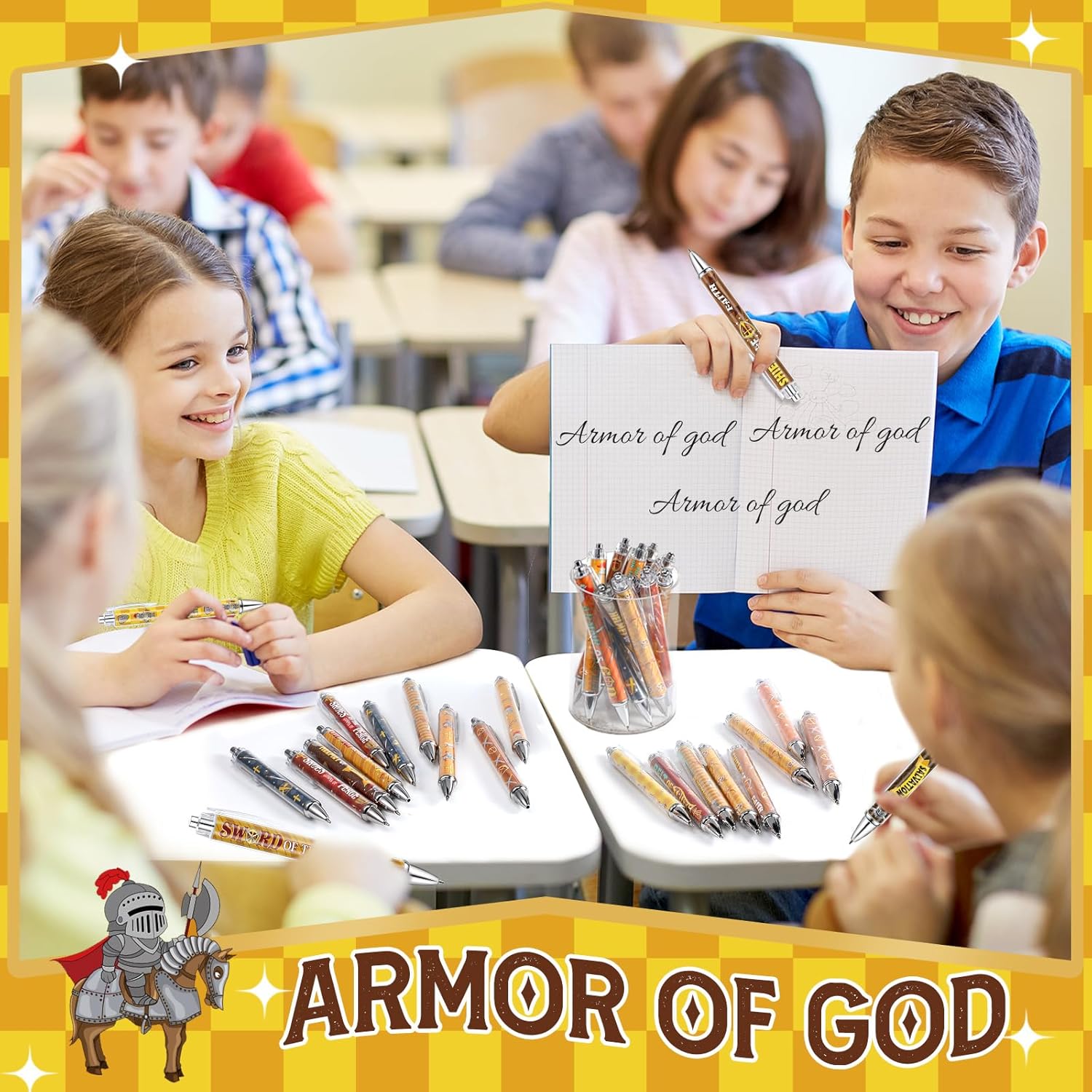 Armor of God Theme Design: our armor of god gifts contain 12 different knight elements patterns, including armor, shield, sword, crucifix, boots, belt and more, with inspiring messages like ‘belt of truth’ and ‘sword of the spirit’, be full of strong motivational atmosphere; The medieval party favors are not only fun writing instruments, but also attractive decorations, which will stand out from most ordinary ballpoint pens