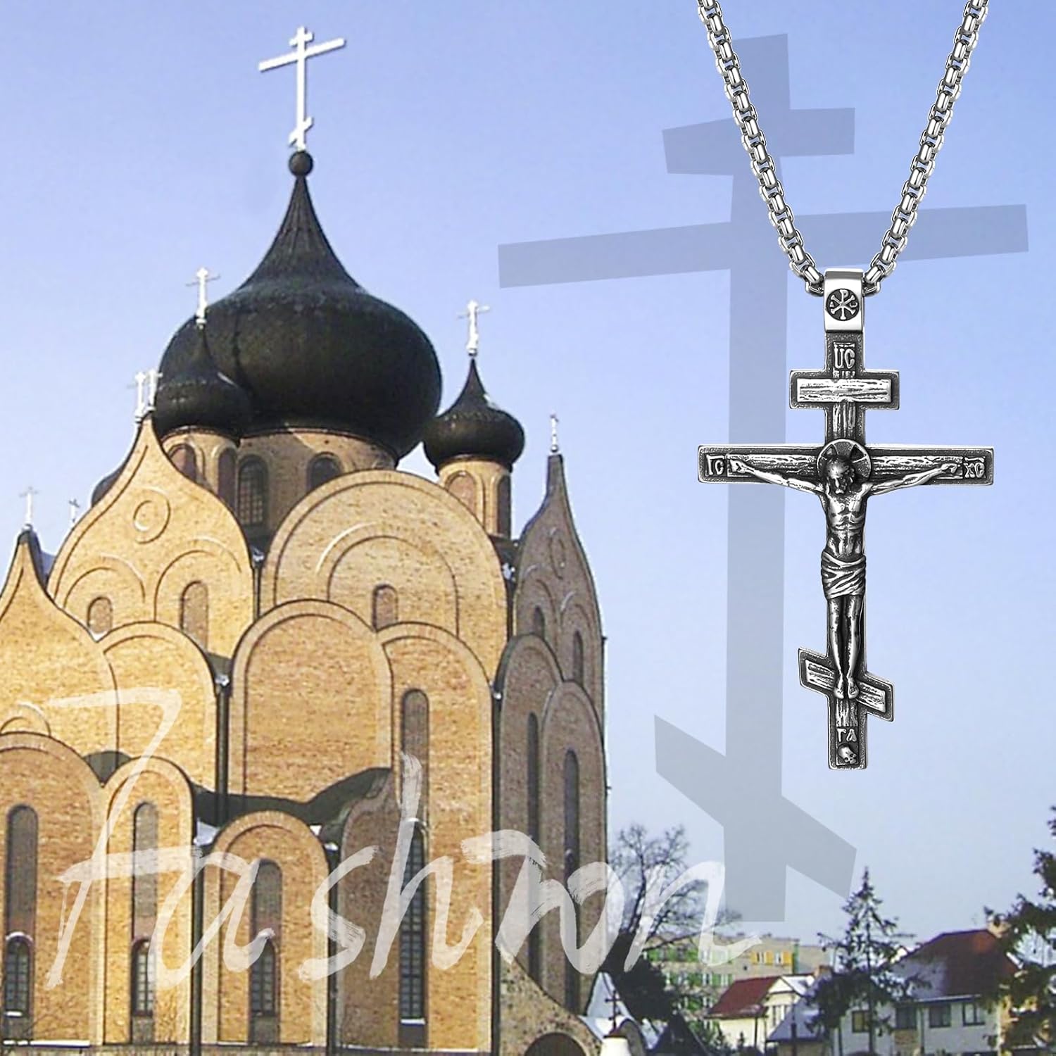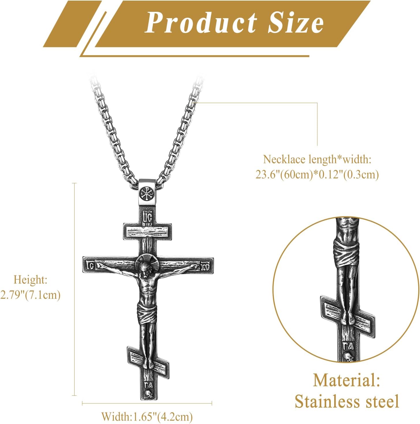 Orthodox Crucifix Cross Necklace for Men: Stainless Steel Religious Jesus Crucifix Byzantine Cross Christian Amulet Pendant Jewelry Gifts for Women