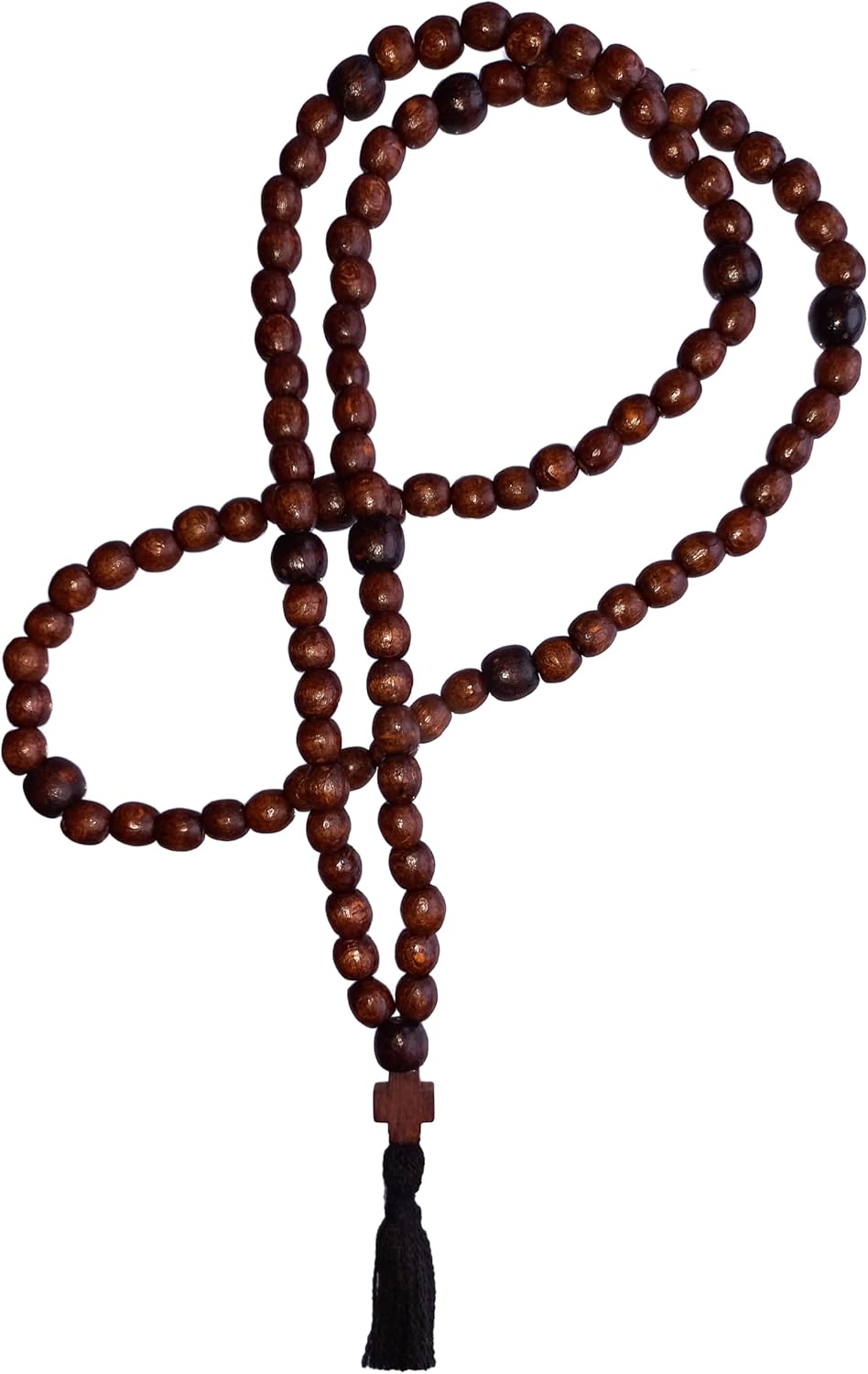Prayer Rope Komboskoini Orthodox Christian Chotki Greek 100 Wooden Knots Wood Cross Pray Brown