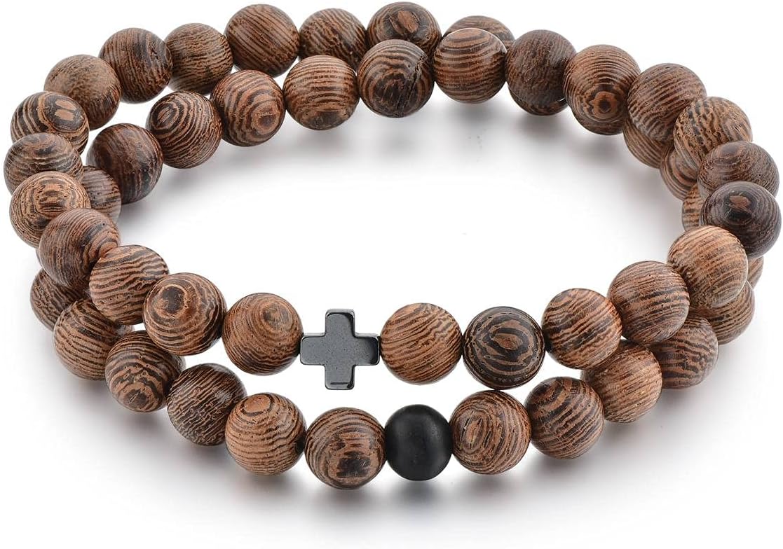 St John the Baptist Orthodox Wooden Prayer Beads Bracelet | Men Women 8 MM + Hematite Cross | Great Gift