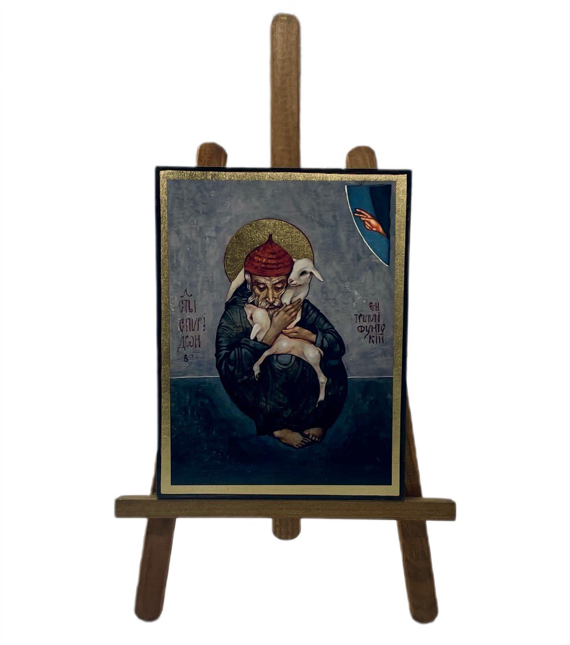 Icon of St. Spyridon – Greek Orthodox Handmade Icon, Byzantine Art Wall Hanging Wood Plaque, Religious Decor, Christian Gift. 11 x 14 см (4,3″ x 5,5″)