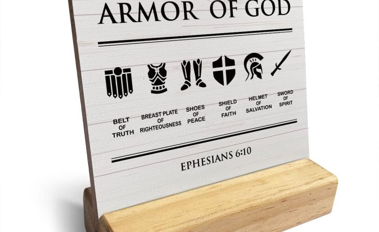 Country Put on the Full Armor of God Bible Verses Wooden Plaque Sign Desk Decor Rustic Motivational Ephesians 6:10 Christian Desk Sign Decor for Home Office 4 x 4 Inches