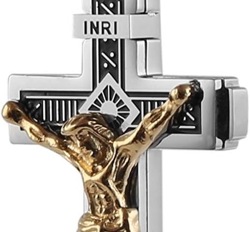 HZMAN Catholic Jesus Christ on INRI Cross Crucifix Gold Silver Tone stainless steel Pendant Necklace 22+2 Chain
