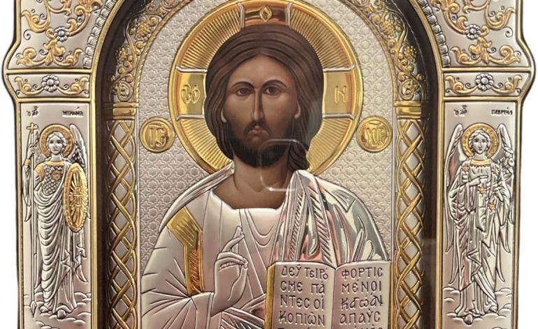 (AS-4/001/G/K) Jesus Christ Byzantine Silver Christian Orthodox Icon With GLASS/Greek Handmade (10×7) (10×7)