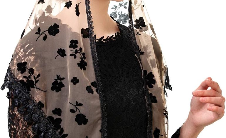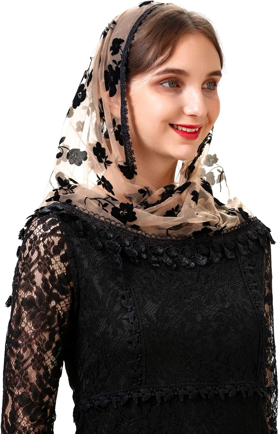 PAMOR Triangle Lace Veil Mantilla Cathedral Head Covering Chapel Veil for Mass Wedding Bridesmaids