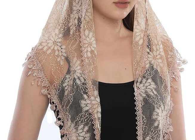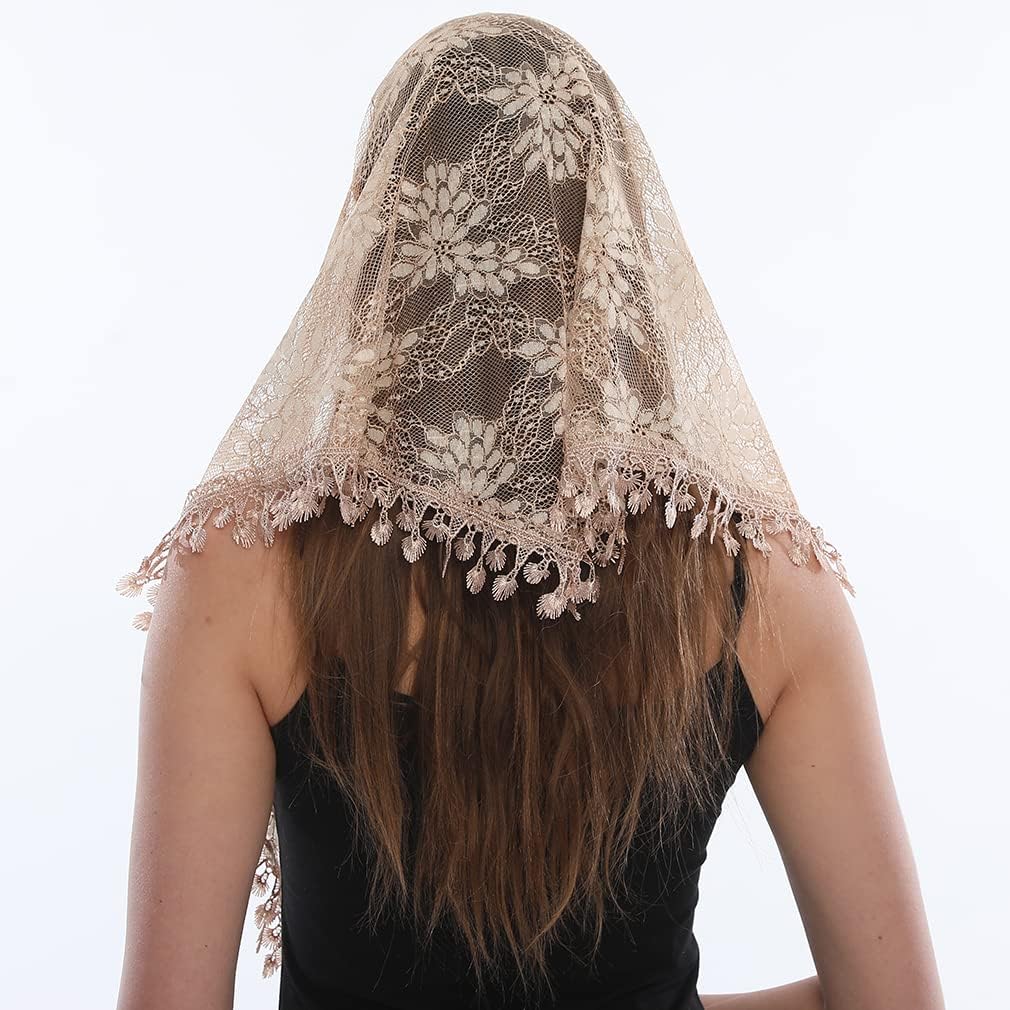 LMVERNA Lace Veil Triangle Mantilla Church Head Covering Latin Scarf for Mass Wedding Bridesmaids
