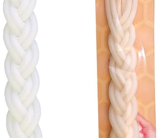 Havdalah Candle – Non-Drip and Smokeless White Beeswax Havdalah Candle – Multi Wick Candle, Handmade Braided Shabbat Candle – 10” Long by Never-Drip