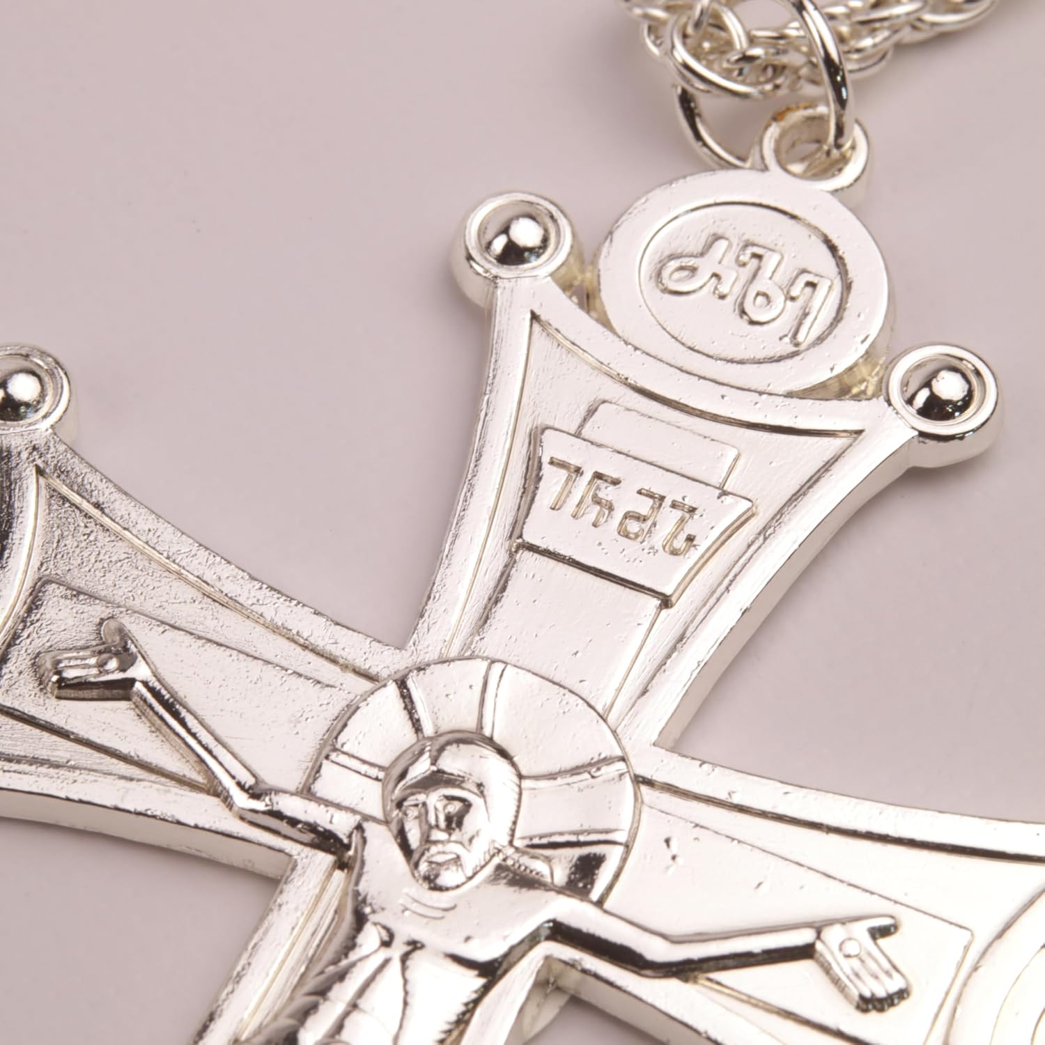 Silver Plated Pectoral Cross – Brass Religious Pendant, Catholic Church Supplies, 48 Inches