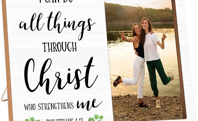 Christian Gifts Picture Frame For Women, I Can Do All Things Through Christ Photo Frame, Bible Verse Gifts For Family Friend, Inspirational Gifts For Birthday Christmas Thanksgiving Graduation -A20