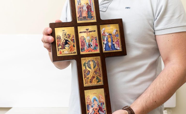 This premium wooden cross icon beautifully captures the life of Jesus. Handmade in Greece, this Orthodox icon is an essential piece for both collectors and believers. The intricate details and expressive features make it a powerful addition to any collection or display. Carefully crafted, this icon is a true work of art. Its wooden construction adds a unique and authentic touch, while the detailed design ensures it will be cherished for years to come. Whether you’re a collector or a devout believer, this icon is sure to impress. Add it to your collection today! The Life of Jesus, Passion of Jesus Silk Screen Serigraph Icon This exquisite wall-hanging icon, inspired by Byzantine art, is crafted on carved wood and portrays the life of Christ according to the Orthodox tradition. It illustrates key events from Jesus’s earthly life, distinct from His eternal life representations such as Christ in Majesty or His Baptism. Size: 45×25 cm (17.71 x 9.84 inches) Each icon replicates the look and feel of a hand-painted masterpiece, closely mirroring authentic Byzantine artworks with exceptional precision. The curved wooden cross is embellished with high-quality iconographic silkscreens, depicting the life of Jesus Christ. The solid natural wood enhances its beauty and authenticity