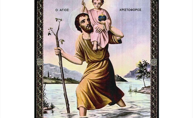Inspired by Greek and Byzantine icons, this Saint Christopher is made of MDF wooden board and offers a meaningful representation of religious kuns