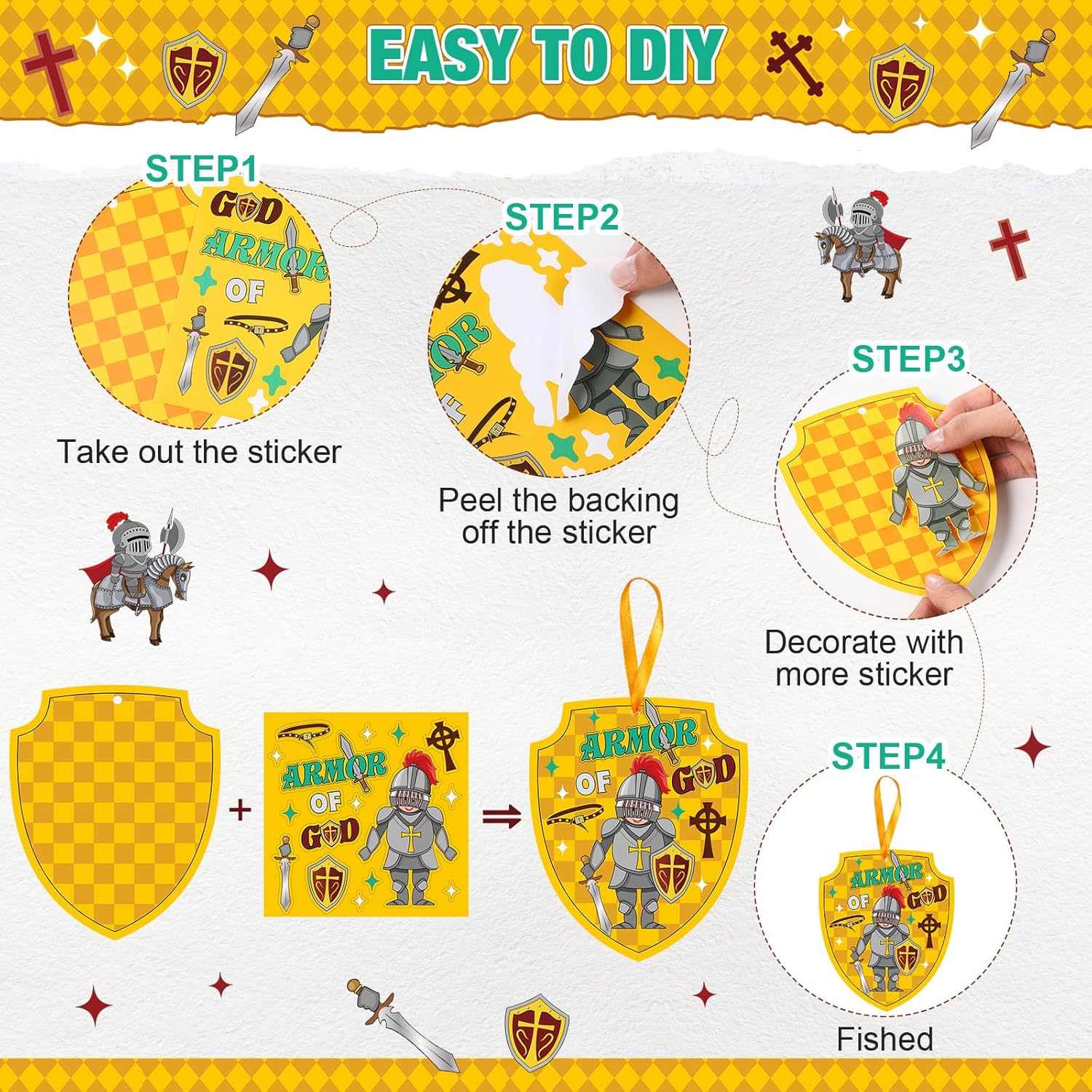 Blosssound 32 Sets Religious Craft Kits for Kids Armor of God Sticker DIY Christian Ornament Make Your Own Bible Craft Projects for Religious Sunday School Classroom Party(Armor of God)