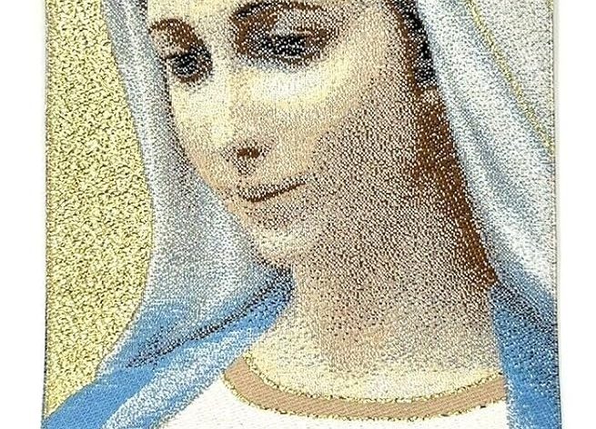Religious Icon, Holy Saint Mary Blessed Virgin, Our Lady of Guadalupe, Woven Tapestry Icon With Metal Crosses Featuring Jesus Christ, Perfect Home Decor for Entire House or Office Spaces.