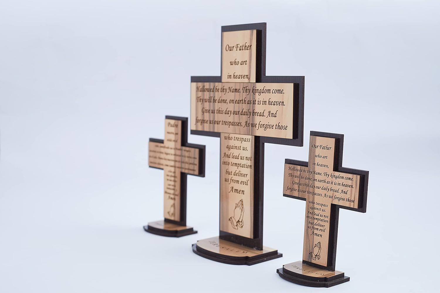 WOOD STANDING SCRIPTURE CROSS – Engraved with the most common & beloved Christian prayer ‘The Lord’s Prayer’ which was given by Jesus to his disciples to pray.